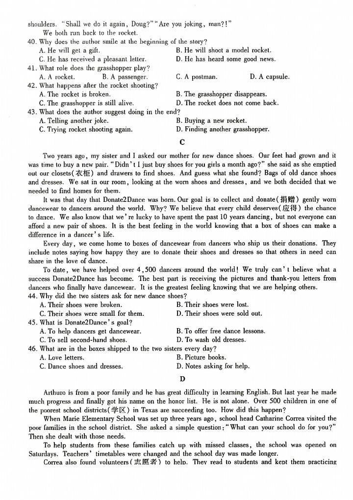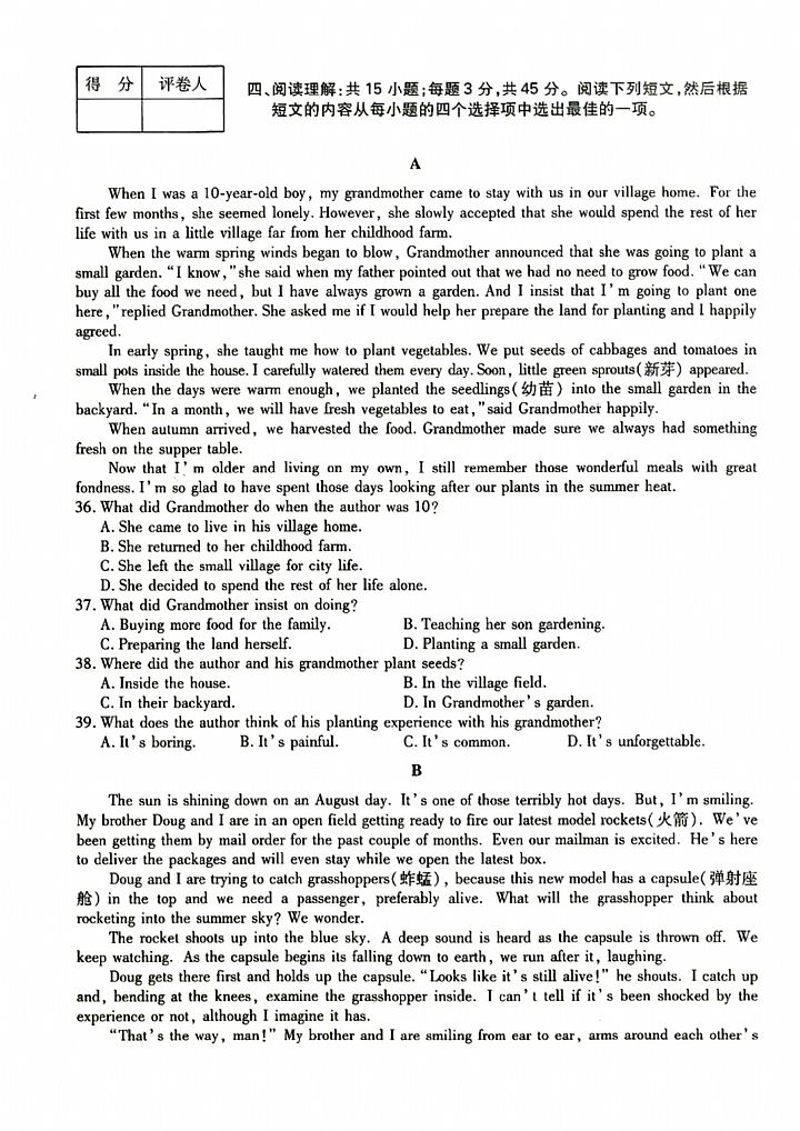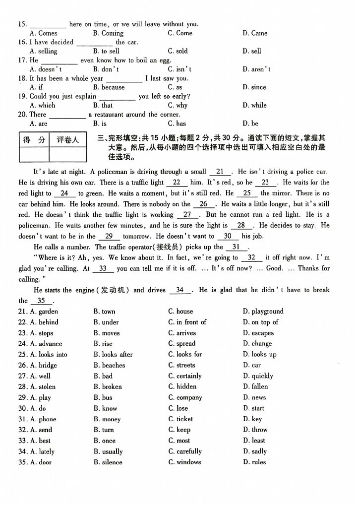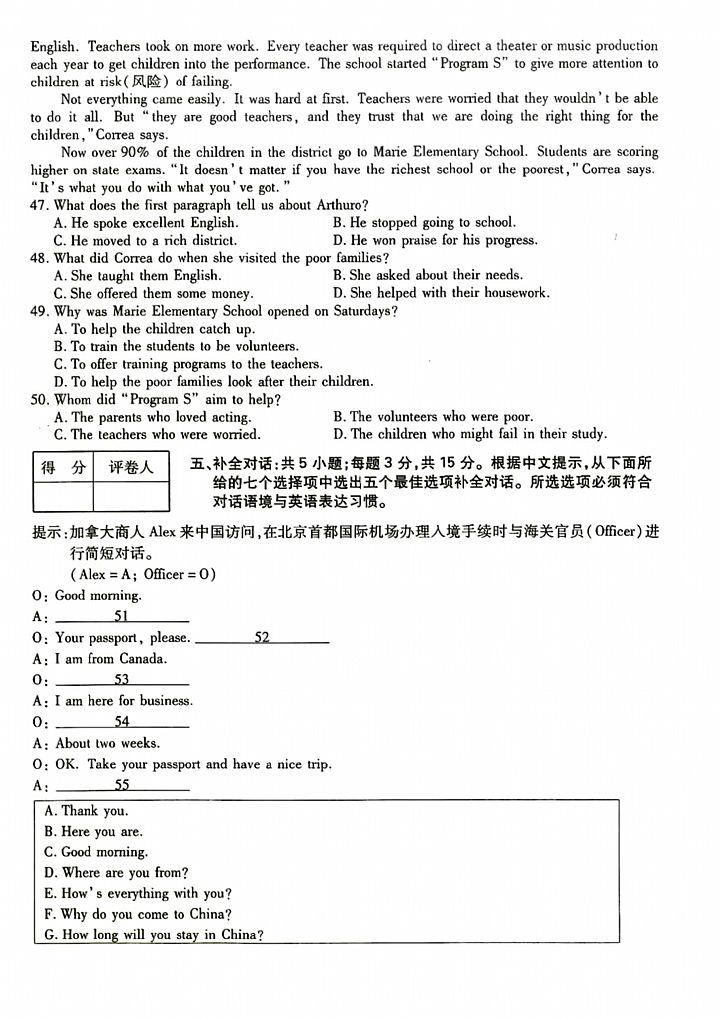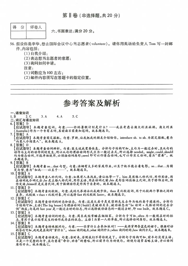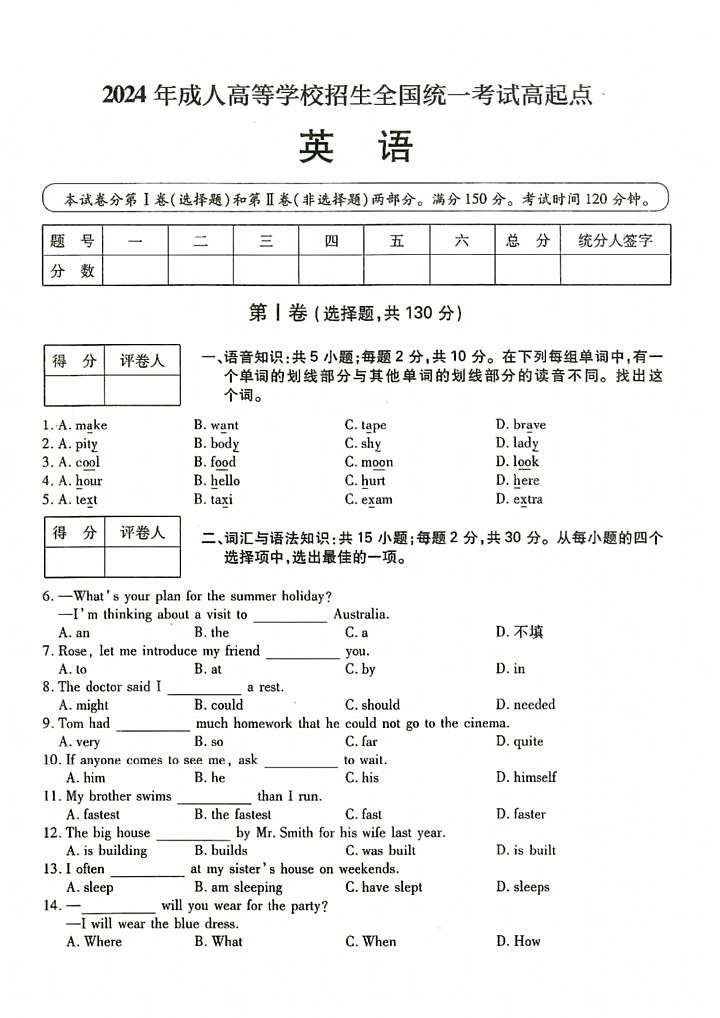 2024年成人高考高起点《英语》真题及答案